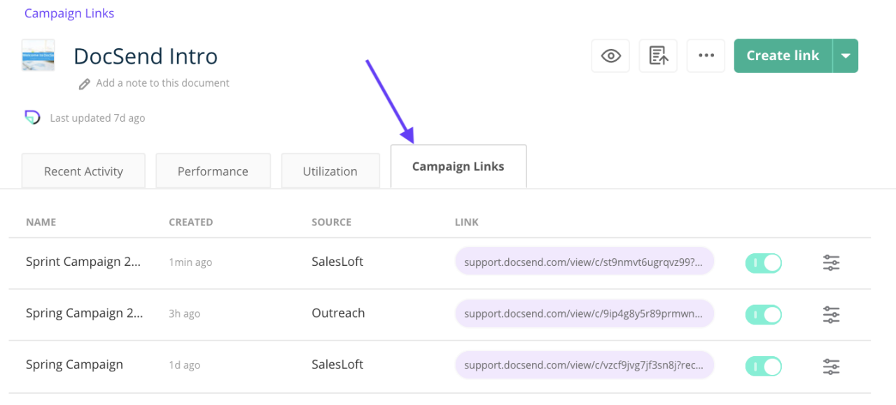 Campaign links in Dropbox DocSend